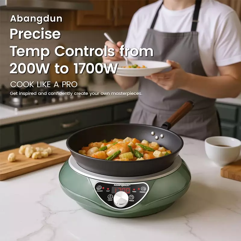 INDUCTION COOKER: The Abangdun 110V-120V induction cooktop is suitable for all North American households and commercial applications. Its compact design makes it the perfect choice for outdoor cooking, meeting a wide range of culinary needs. They are usually applied in kitchens, commercial use, travel, etc.