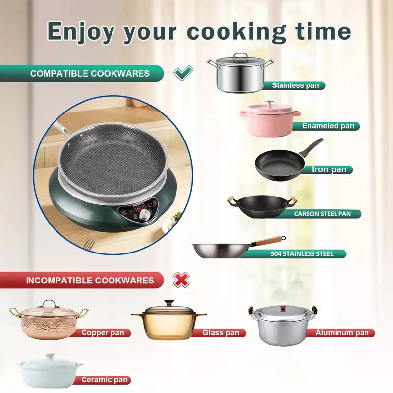 200W–1800W Flat Induction Cooker | Commercial Grade, Button & Knob Control | Customizable Power & OEM/ODM Supported