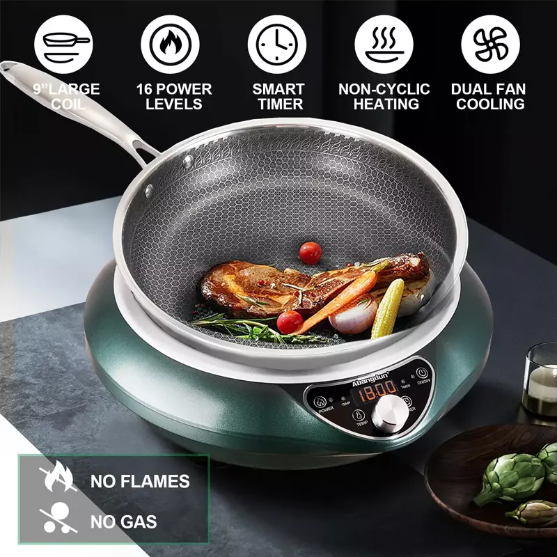 This review is for the 12 inch fry pan only, which the listing was originally for, not a fry pan plus induction hot plate. I cooked on it almost every day for two weeks to write an honest review and my family ate pretty well in my quest for accuracy.