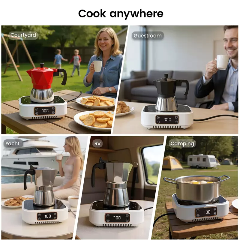 Powerful Performance Electric Stove :The electric mini cooktop with 700W of power and 120V voltage, this mini induction cooktop ensures efficient and quick heating for your coffee, milk, tea or small cooking tasks.