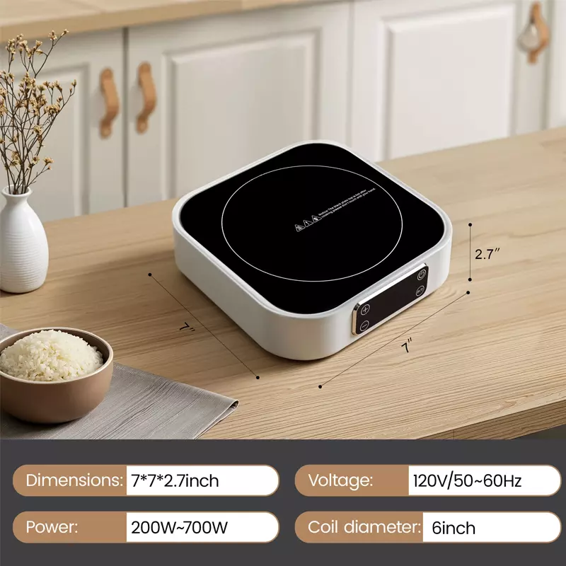 700W Compact Mini Induction Cooker | 7.28×7.28×2.76 inch Design, Continuous Heating | Customizable Power Output | OEM/ODM Service